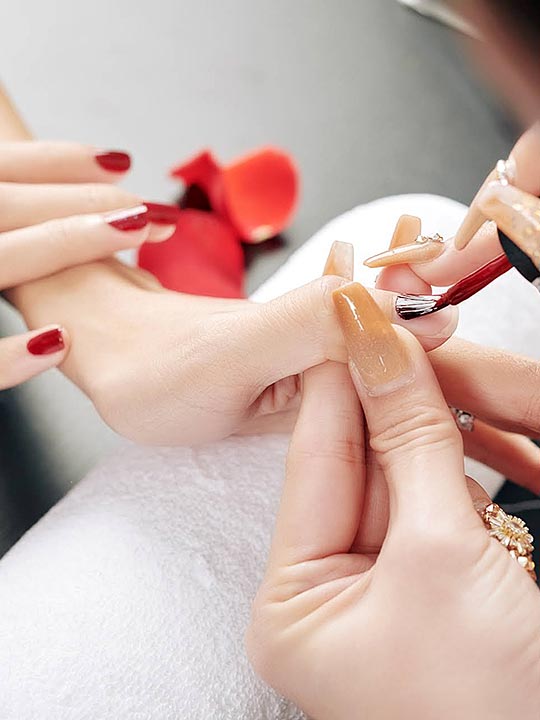 Nail trimming & shaping | cuticle care | massage with lotion | hot towel | polish